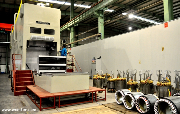 皖南電機(jī)控股威能電機(jī)公司自動真空連續(xù)浸漆機(jī)正式投入使用,該設(shè)備主要用于中心高H315-355電機(jī)有繞組定子的絕緣處理。
