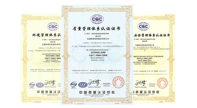 通過國家ISO9001質(zhì)量管理體系、ISO14001環(huán)境管理體系和OHSAS18001職業(yè)健康安全管理體系認證